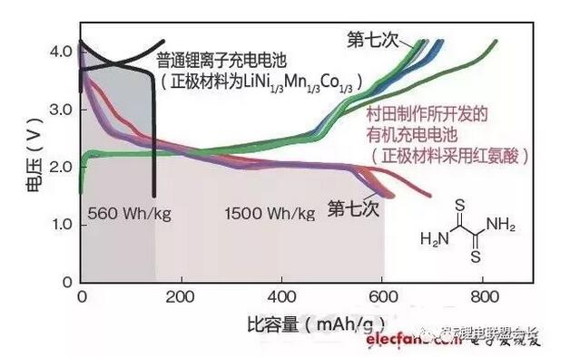 有機化合物與現(xiàn)行的材料相比可提高正極的比容量。村田制作所將紅氨酸定位為主要候補,已確認(rèn)可將容量密度提高到650mAh/g左右。