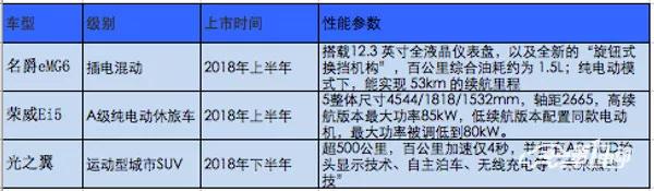 2018年,上汽計(jì)劃能夠銷售10萬輛新能源汽車,并推出名爵eMG6、榮威Ei5、光之翼等三款新車。其中上半年推出兩款,下半年推出一款。