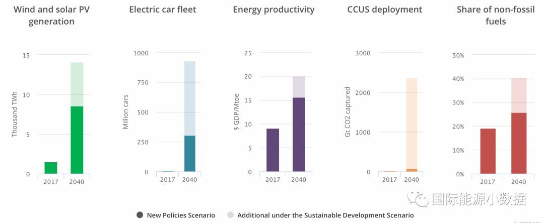 2017年全球非化石能源比例為19.2%;在新政策情景下,2040年全球非化石能源比例將達(dá)25.8%;而可持續(xù)發(fā)展情景所需要的非化石能源比例應(yīng)為40%。