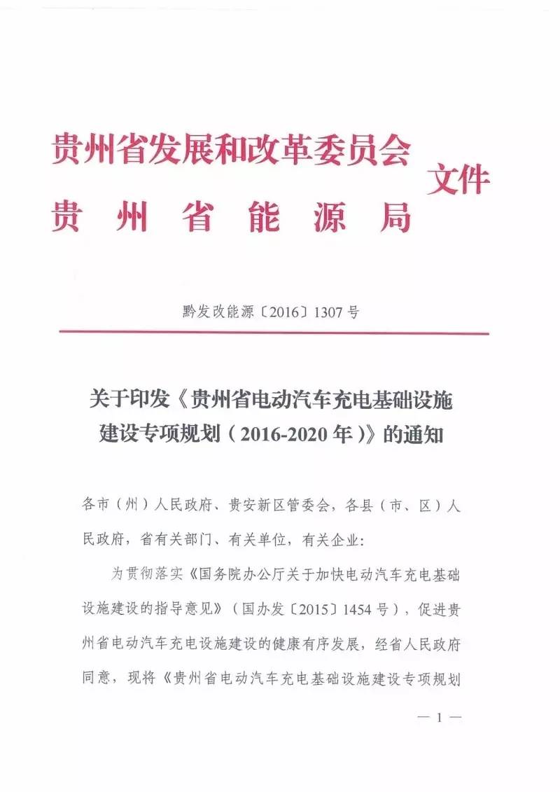 貴州省電動汽車充電基礎(chǔ)設施專項規(guī)劃(2016-2020年)