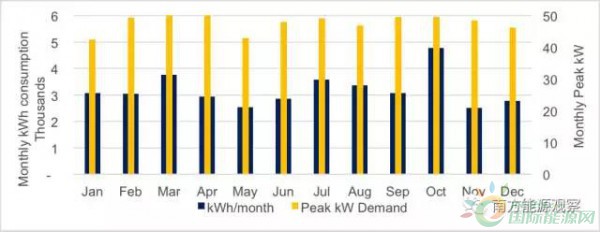 圖1:一家EVgo充電站每月能源用量和峰值需求