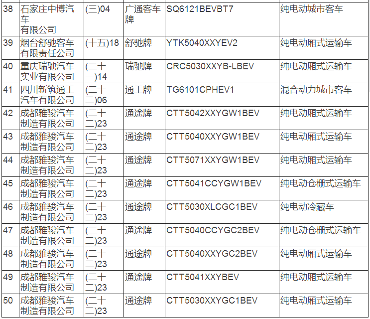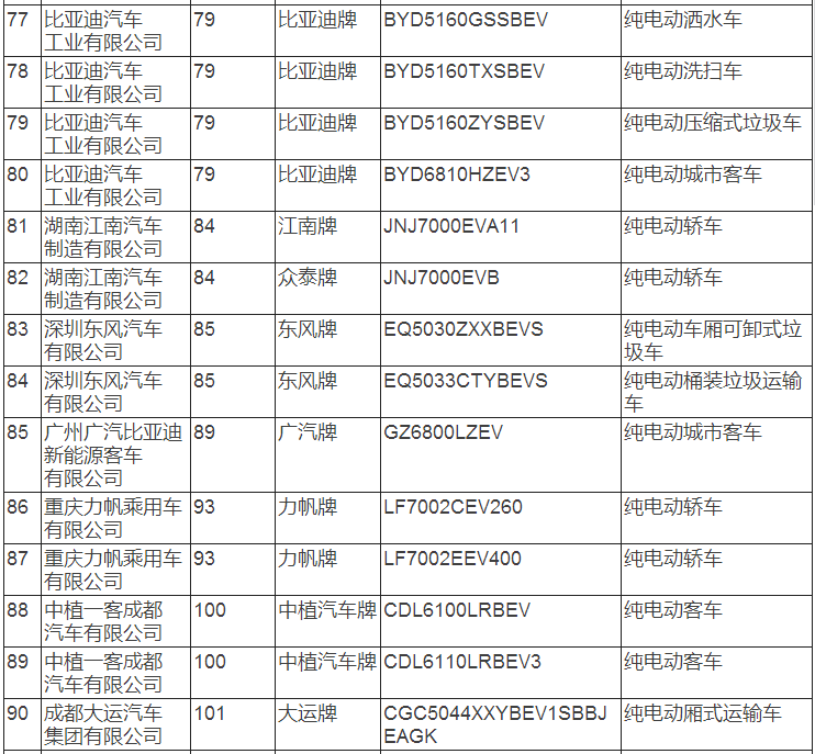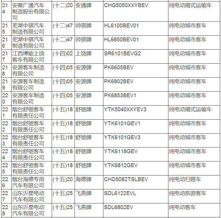 新能源汽車推廣應(yīng)用推薦車型目錄(2017年第8批)