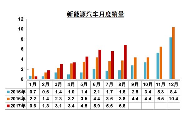 8月新能源汽車銷售6.8萬(wàn)輛 同比增76.3%