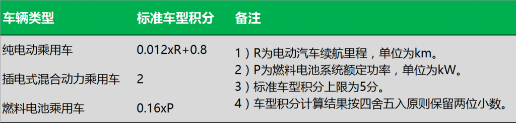 表:新能源汽車(chē)積分計(jì)算辦法。