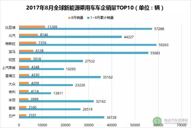 2017年8月全球新能源乘用車(chē)車(chē)企銷(xiāo)量TOP10