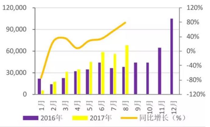 2010年全球新能源汽車的銷量僅為 0.7 萬輛,受益于新能源相關政策(新能源補貼政策、燃油車退出計劃等)的大力扶持,新能源汽車的銷量快速上升,2013-2016 年的復合增長率為+54%,2016 年的增速略有放緩,仍達到了+36%。2016 年全球新能源汽車銷量創(chuàng)歷史高點,總計超過 75 萬輛。中國更是成為了世界新能源汽車最大的生產和銷售市場。