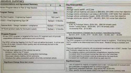 近日,一份有關(guān)FF91的內(nèi)部項(xiàng)目評(píng)估報(bào)告,揭示了大量不為外界所知的重要信息,包括計(jì)劃零售價(jià)、平均稅前利潤、量產(chǎn)時(shí)間表等具體指標(biāo)。