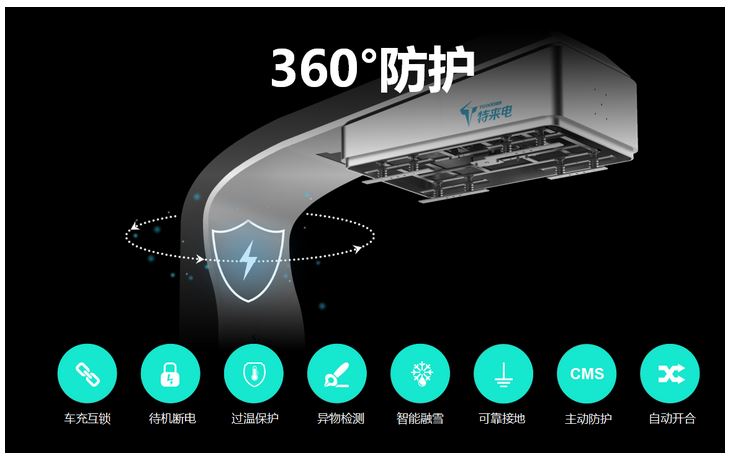 充電弓采用了特來(lái)電自主研發(fā)的CMS主動(dòng)柔性充電系統(tǒng),實(shí)時(shí)監(jiān)測(cè)充電狀態(tài),一旦發(fā)現(xiàn)異常狀況,CMS將主動(dòng)切斷對(duì)充電終端的供電。同時(shí),還配置了車(chē)充互鎖、待機(jī)斷電、過(guò)溫保護(hù)、異物檢測(cè)、PE接地信號(hào)確認(rèn)、壓力檢測(cè)、視頻監(jiān)控等多項(xiàng)防護(hù)措施,做到充電弓精準(zhǔn)、穩(wěn)定對(duì)接,實(shí)現(xiàn)高溫預(yù)警、超溫?cái)嚯姡U铣潆姲踩?/span>