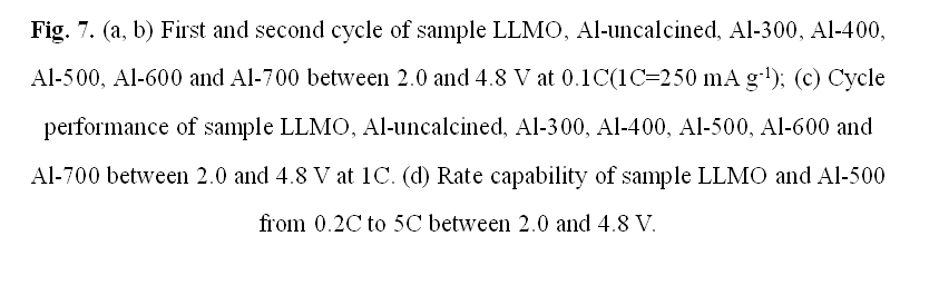 近期,梁逵教授團(tuán)隊碩士研究生文曉峰研究發(fā)現(xiàn)采用九水硝酸鋁溶液對富鋰錳正極材料處理并煅燒后,可以把它的表層層狀結(jié)構(gòu)轉(zhuǎn)變?yōu)榧饩Y(jié)構(gòu),并在尖晶石結(jié)構(gòu)外包覆一層氧化鋁。尖晶石結(jié)構(gòu)具有3D鋰離子運(yùn)輸通道,大大提高了鋰離子的傳導(dǎo)速率,從而提高材料的倍率性能;同時氧化鋁包覆層可以隔絕活性材料與電解液的直接接觸,避免了電解液對活性材料的損害,提高循環(huán)性能。這種處理方法工藝簡單,對設(shè)備要求低,可以同時提高富鋰錳正極材料的倍率性能和循環(huán)性能。經(jīng)過改性處理后,富鋰錳正極材料在250mA/g的電流密度下放電容量可高達(dá)240mAh/g,在1250mA/g的大電流下放電容量仍能達(dá)到190mAh/g。