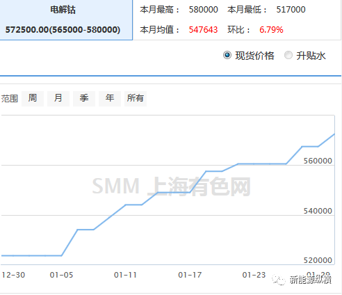 截至2017年,倫敦金屬交易所(LME)的鈷交易價(jià)格上漲至132%,從年初的32500美元/噸飆升至年底的75500美元/噸。