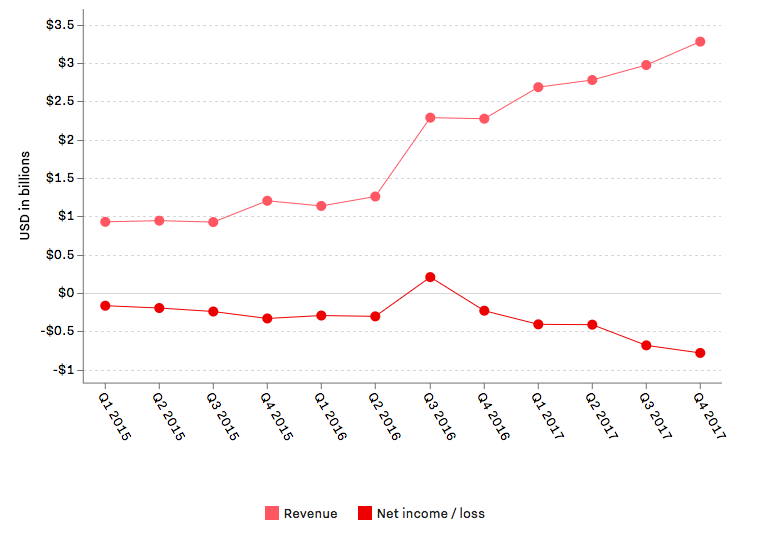 然而由于制造生產(chǎn)成本支出太多,第四季度凈虧損達(dá)到7.71億美元,這是有史以來最大的季度虧損。特斯拉在2017年的日子很不好過,報(bào)告顯示,特斯拉在2017年凈虧損達(dá)22.4億美元,較2016年凈虧損7.73億美元大幅增加。
