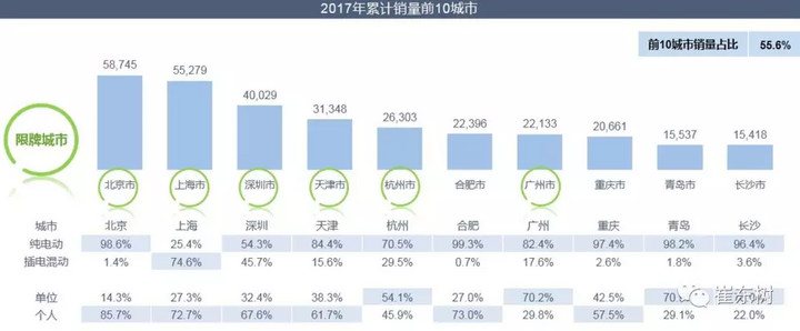 17年的1-2月保監(jiān)會交強(qiáng)險汽車銷量數(shù)據(jù)體現(xiàn)上海暫時超過北京,但隨著北京放牌,3-5月北京回歸領(lǐng)軍地位。1-12月北京的新能源車達(dá)到5.9萬臺,其中基本是純電車型。