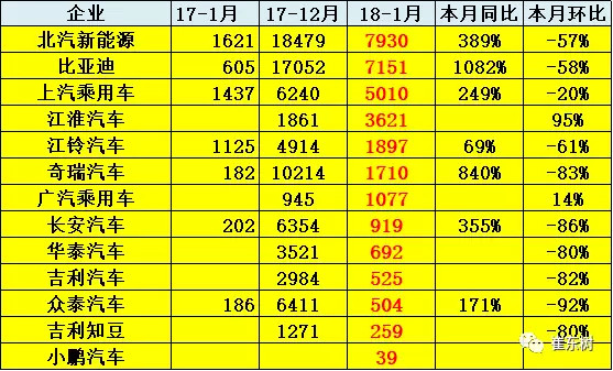 18年1月的北汽新能源的銷量是7930臺,其中基本都是包含北汽新能源公司生產(chǎn)的。