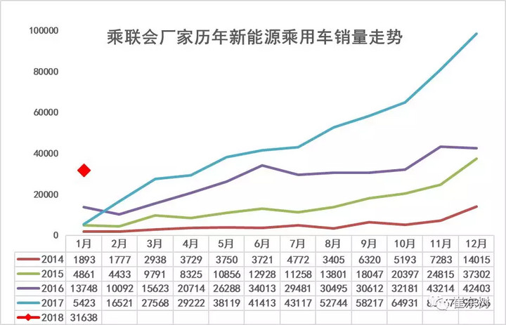 2018年1月新能源乘用車銷3萬增4倍,實現(xiàn)開門紅