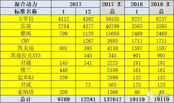 1月份普通混合動力主力車型表現(xiàn)特別優(yōu)秀,尤其是卡羅拉的銷量,在1月份達(dá)到8237臺的一個較好水平,同比增長翻倍。雷凌的混合動力在1月份的銷量達(dá)到3565臺,較12月稍有下降。雅閣的混動這月也達(dá)到2469臺的較高水平。凱美瑞這月達(dá)到了1587臺水平,形成的一個增長動力,也就是廣豐現(xiàn)在是兩個混合動力的車型序列。而本田目前主要還是集中在CRV跟雅閣兩個產(chǎn)品上。韓系的混合動力表現(xiàn)也是一個很不錯的,尤其索納塔跟加k5,總體表現(xiàn)相對平穩(wěn)。而未來來看,像索納塔的插電混動產(chǎn)品,可能也要推出PHEV,跟普通活動力的組合,形成很好的產(chǎn)品系列。