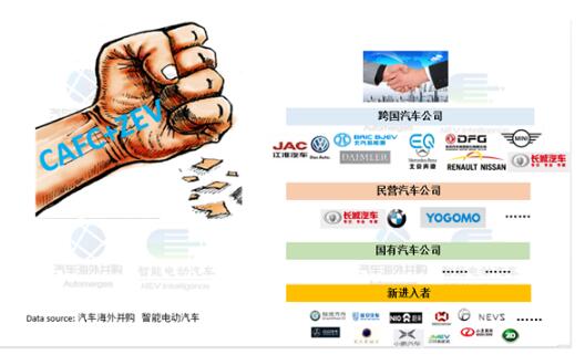而以北汽新能源、長江汽車、奇瑞新能源、江鈴新能源、云度、知豆、蔚來、威馬、小鵬等為代表的已經(jīng)獲得獨立新建純電動生產(chǎn)資質(zhì)的企業(yè)或通過其他途徑過得資質(zhì)的造車新勢力,以及其他新能源資質(zhì)的申請者如特斯拉、FMC、博郡、唐駿、河南森源、時風(fēng)、車和家、游俠、小鵬、奇點、力帆、比克、云南德動、昌河、上汽通用五菱等等,則會成為包括國有企業(yè)和跨國公司在內(nèi)各方合縱連橫、投資、代工、并購等的潛在對象。
