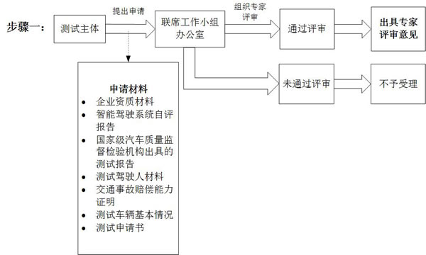 聯(lián)席工作小組組織交通、通信、汽車、電子、計(jì)算機(jī)、法律、財(cái)務(wù)等相關(guān)領(lǐng)域?qū)<医⑸钲谑兄悄荞{駛測(cè)試專家?guī)?,定期召開專家組評(píng)審會(huì)議,對(duì)測(cè)試主體提出的道路測(cè)試申請(qǐng)進(jìn)行論證,形成評(píng)審意見。