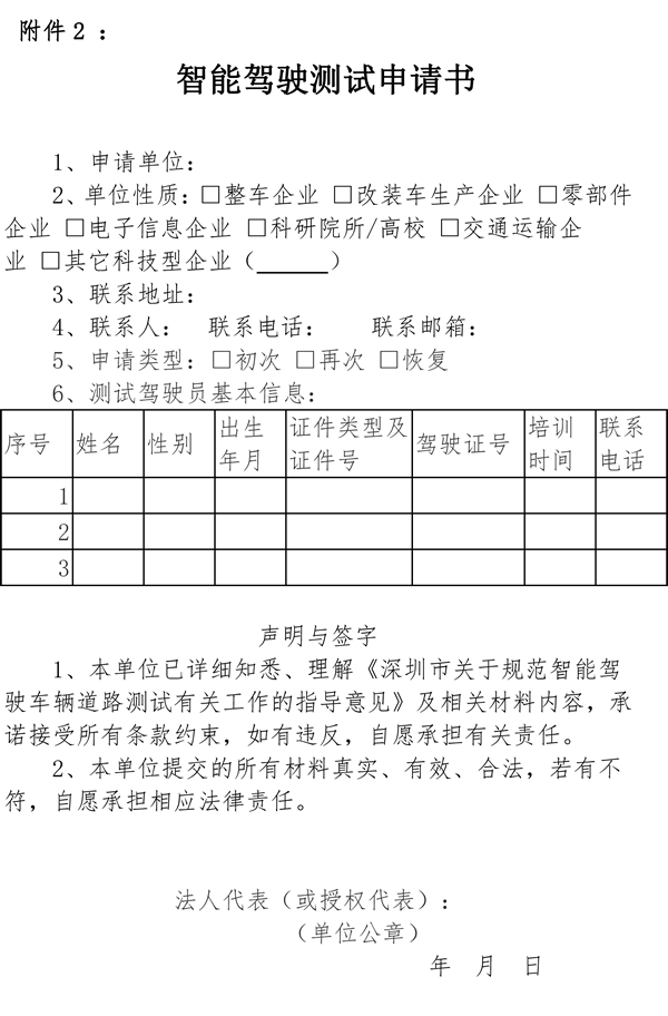 附件:深圳市關(guān)于規(guī)范智能駕駛車輛道路測(cè)試有關(guān)工作的指導(dǎo)意見(征求意見稿)