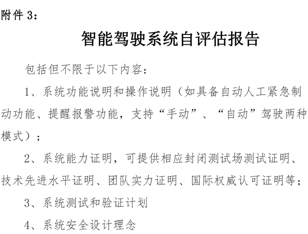 3、測(cè)試主體應(yīng)取得聯(lián)席工作小組辦公室出具符合智能駕駛道路測(cè)試要求的評(píng)審意見。
