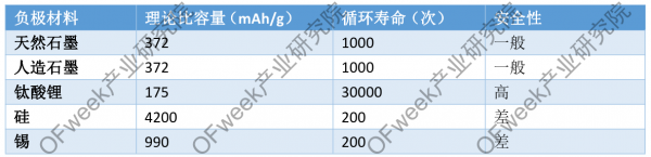 圖表 幾種負(fù)極材料性能對(duì)比