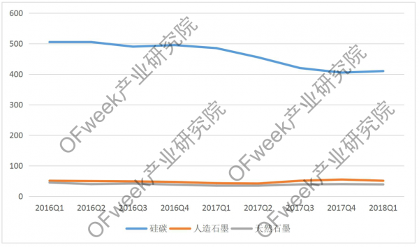 圖表 幾種鋰電池負(fù)極材料的價(jià)格(單位:元/kg)