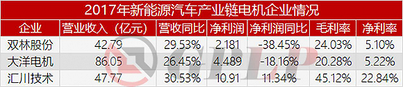 在電機(jī)行業(yè)中,主要有上市企業(yè)中三大電機(jī)提供商大洋電機(jī)、雙林股份、匯川技術(shù)為主。