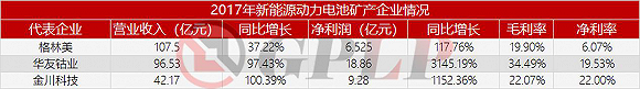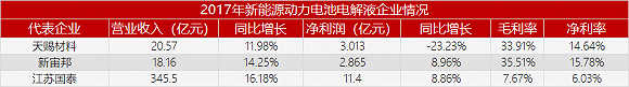 隨著新能源的發(fā)展,推動(dòng)六氟磷酸鋰走高,上市企業(yè)多氟多2016年凈利潤(rùn)水漲船高增速高達(dá)1404.65%,但2017年受補(bǔ)貼和公司戰(zhàn)略影響,出現(xiàn)-36.71%的負(fù)增長(zhǎng)。