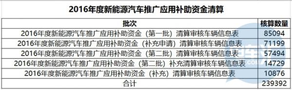 根據(jù)電車(chē)匯統(tǒng)計(jì),去年起,工信部陸續(xù)啟動(dòng)了共計(jì)5批的新能源汽車(chē)購(gòu)車(chē)補(bǔ)貼清算。此次清算從2016年推廣的新能源汽車(chē)開(kāi)始,共覆蓋車(chē)輛23.93萬(wàn)輛,對(duì)比中汽協(xié)2016年50.7萬(wàn)的新能源汽車(chē)總銷(xiāo)量,清算通過(guò)率僅為47.2%。以此類(lèi)推,2016年還應(yīng)清算的新能源汽車(chē)補(bǔ)貼資金約為26.45億元,2017年還應(yīng)清算的新能源汽車(chē)補(bǔ)貼資金約為24.43億元。