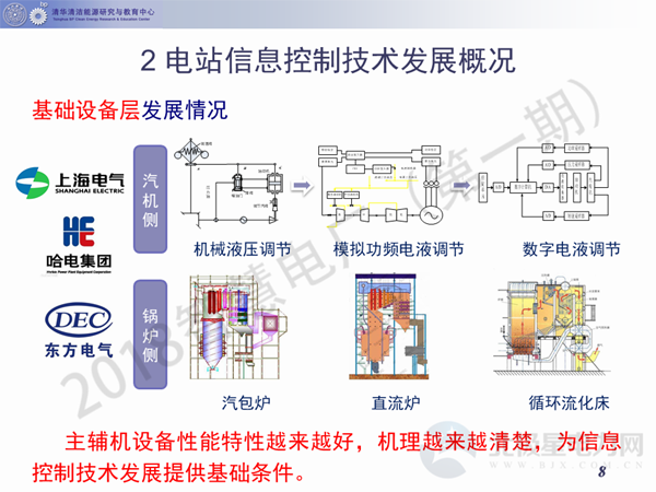 技術設備層這幾年發(fā)展都很快,我們在上學的時候就是機械液壓系統(tǒng),主要是機械液壓調節(jié)運行、模擬公平電壓調節(jié)、數(shù)字電壓調節(jié)等方面;鍋爐主要是從汽包爐到直流爐,現(xiàn)在大規(guī)模超超臨界的循環(huán)流化床,所以主機輔機的特性越來越好,機理也越來越清楚。在機理建模化方面我們做了大量的工作,為信息控制技術的發(fā)展提供了基礎條件,我們要想控制好的話就要仔細了解被控對象的動態(tài)特性。