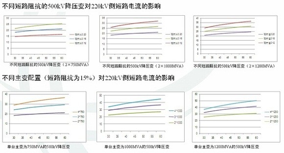 1)不同短路阻抗的500kV降壓變對(duì)220kV側(cè)短路電流的影響