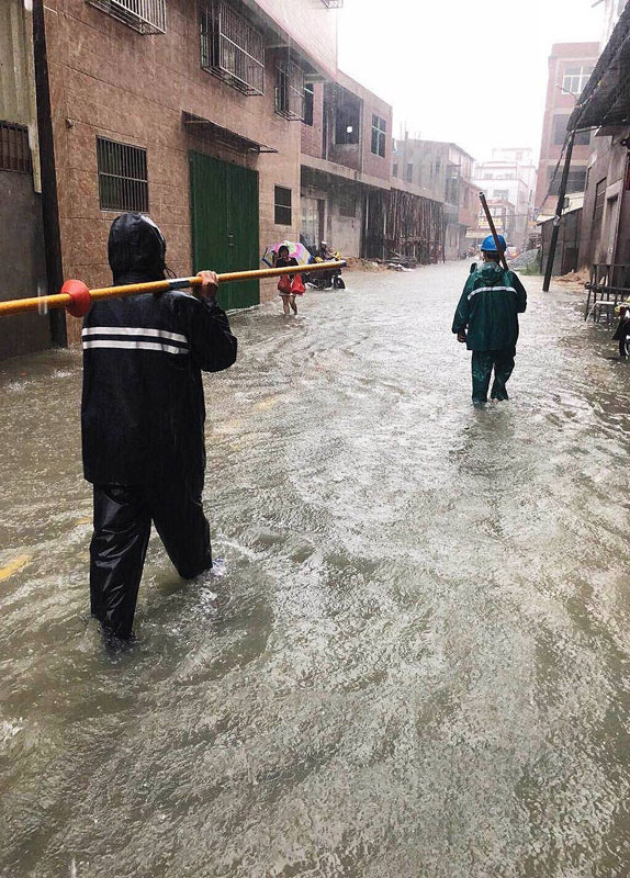南方電網(wǎng)廣東汕頭供電局工作人員第一時間進入水浸嚴重地段,逐一排查設備隱患。