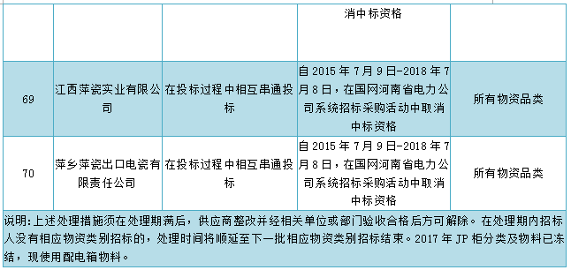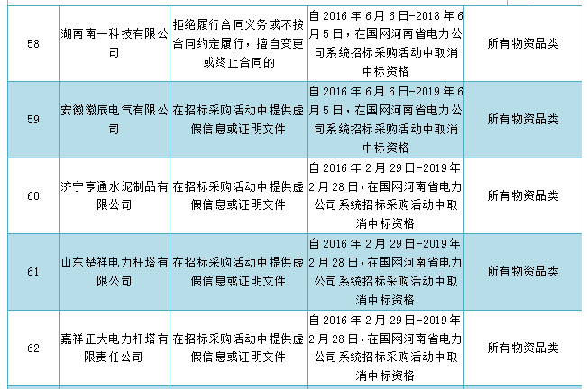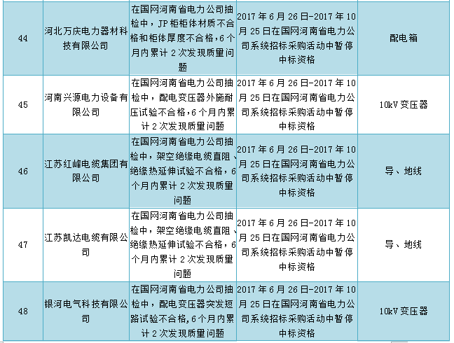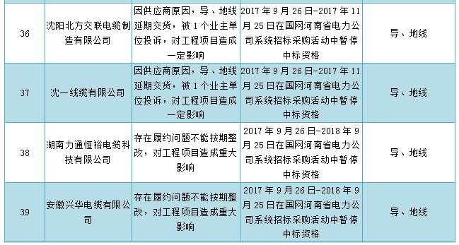 國(guó)網(wǎng)(河南)2017年第三批供應(yīng)商不良行為處置通報(bào)
