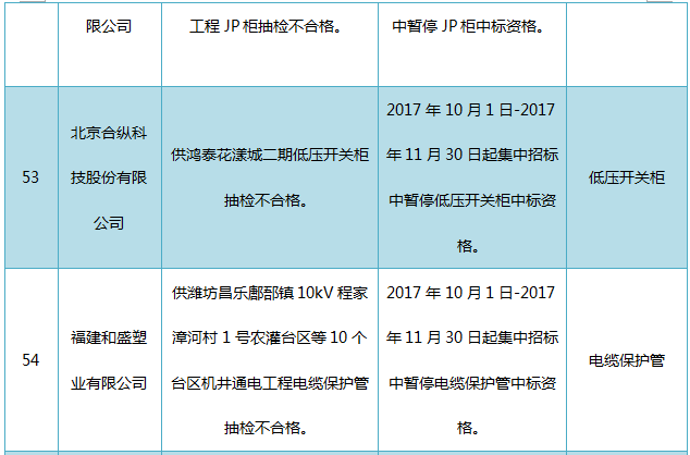 國網(wǎng)山東關(guān)于2017年第七批供應(yīng)商不良行為處理情況的公示(2017年10月)