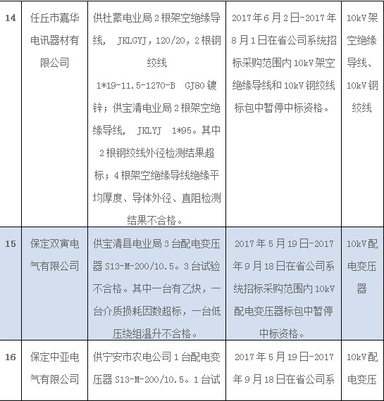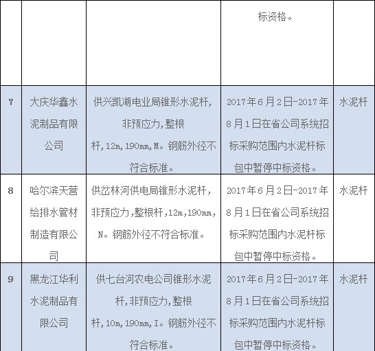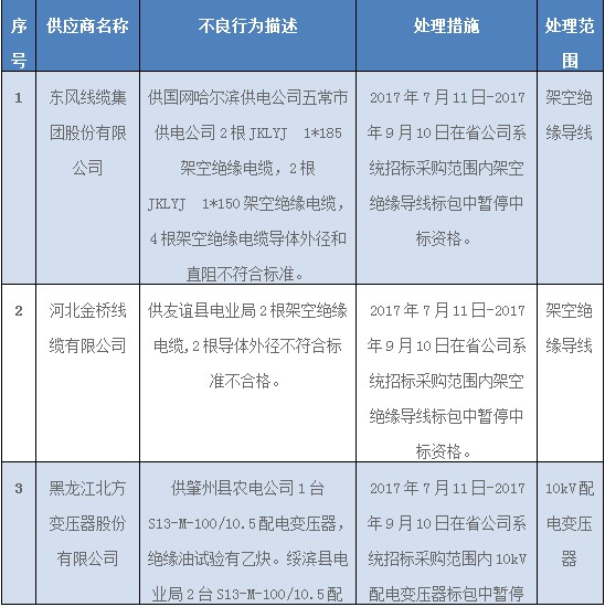 國(guó)網(wǎng)(黑龍江)通報(bào)供應(yīng)商不良行為處理情況(2017年7月)