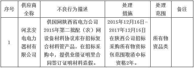 關(guān)于國網(wǎng)陜西省電力公司供應(yīng)商不良行為處理情況的通報(bào)