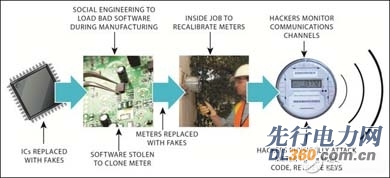 即使掛網(wǎng)的電表都具備一定的保護(hù)措施,可在一定程度上防止篡改。我們?nèi)匀荒軌虬l(fā)現(xiàn)一些容易遭受攻擊的環(huán)節(jié)——生產(chǎn)環(huán)節(jié),所謂的“社交工程”為攻擊者侵入 IP和生產(chǎn)流程提供了機(jī)會?;ㄙM(fèi)數(shù)千美金,攻擊者就有可能獲取程序,通過逆向工程修改后,將“新程序”植入產(chǎn)品。另外,攻擊者也可以將你的程序出售給競爭對手,造成巨大損失