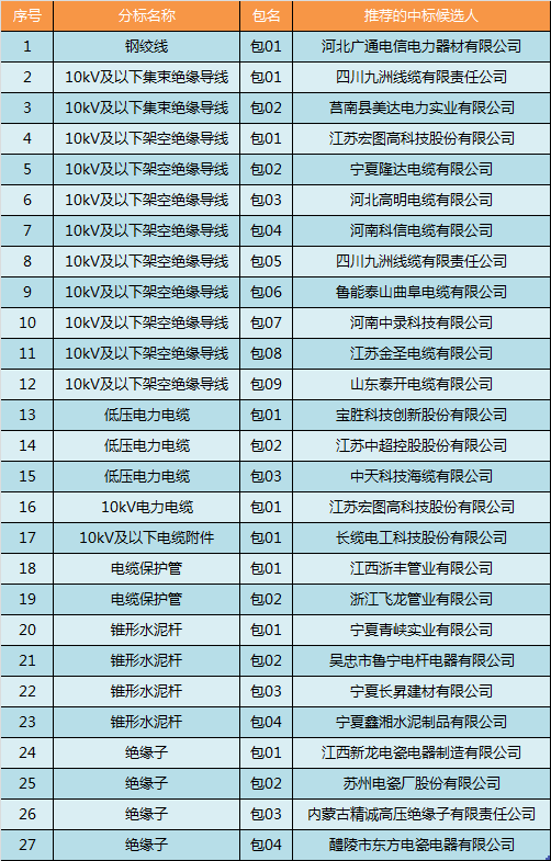 國網(wǎng)寧夏2017年第二次配網(wǎng)設(shè)備/線材協(xié)議庫存貨物招標(biāo)中標(biāo)候選人