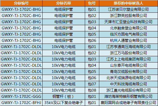 國(guó)網(wǎng)天津2017年第二次配網(wǎng)設(shè)備/線(xiàn)材協(xié)議庫(kù)存貨物招標(biāo)中標(biāo)候選人
