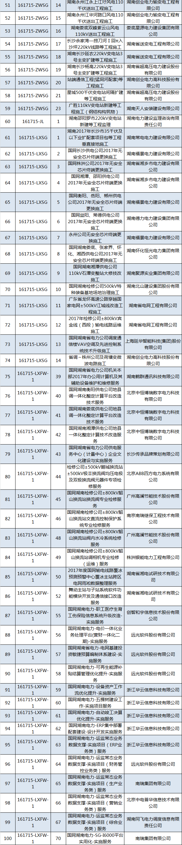 國(guó)網(wǎng)(湖南)2017年第五次工程及服務(wù)項(xiàng)目招標(biāo)采購(gòu)中標(biāo)結(jié)果