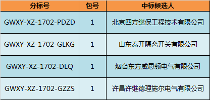 國網(wǎng)(西藏)2017年第二次配網(wǎng)設(shè)備/線材協(xié)議庫存貨物中標結(jié)果