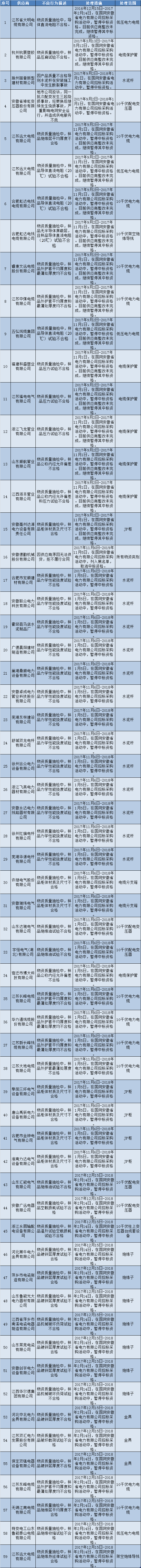 國網(wǎng)(安徽)通報的供應(yīng)商不良行為處理情況(2017年12月)
