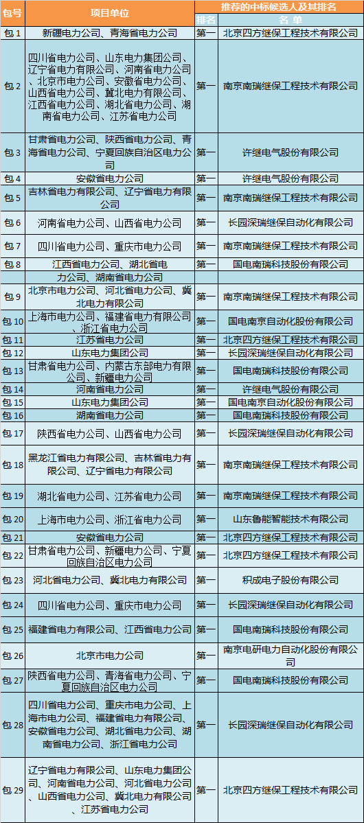 2017年國(guó)網(wǎng)第六次變電設(shè)備—繼電保護(hù)和變電站計(jì)算機(jī)監(jiān)控系統(tǒng)中標(biāo)侯選人名單