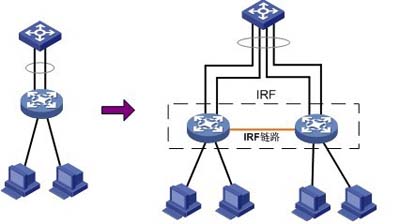 ˙ 高性能。由于IRF系統(tǒng)是由多個支持IRF特性的單機設備虛擬化而成的,IRF系統(tǒng)的交換容量和端口數(shù)量就是IRF內(nèi)部所有單機設備交換容量和端口數(shù)量的總和。因此,IRF技術能夠通過多個單機設備的虛擬化,輕易的將設備的核心交換能力、用戶端口的密度擴大數(shù)倍,從而大幅度提高了設備的性能。