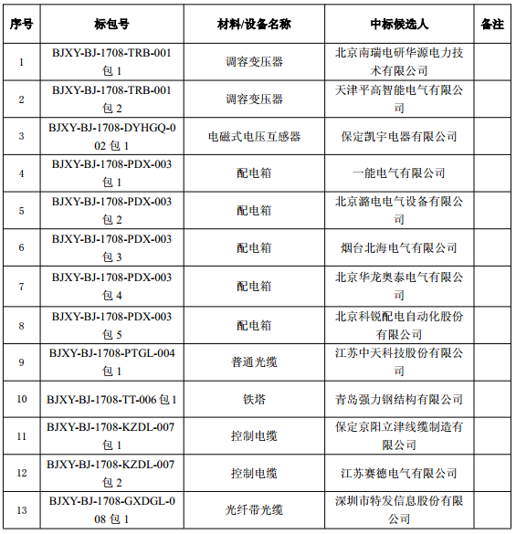 國(guó)網(wǎng)北京2017年第二次協(xié)議庫(kù)存招標(biāo)中標(biāo)候選人名單