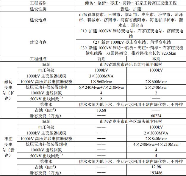 為了構(gòu)建受端特高壓交流環(huán)網(wǎng),滿足上海廟~臨沂等特高壓直流分層接入系統(tǒng)的需要,加強(qiáng)山東及華北特高壓交流網(wǎng)架結(jié)構(gòu),提高山東電網(wǎng)接受外來電能力和系統(tǒng)安全穩(wěn)定水平。國(guó)家電網(wǎng)公司擬建設(shè)濰坊~臨沂~棗莊~菏澤~石家莊特高壓交流工程(曾用名濰坊~臨沂~棗莊~菏澤~石家莊 1000kV 特高壓交流輸變電工程、濰坊~臨沂~棗莊~菏澤~石家莊 1000kV 交流輸變電工程,以下均簡(jiǎn)稱本工程),2017 年 10 月 31 日,本工程獲得國(guó)家發(fā)展和改革委員會(huì)核準(zhǔn)(發(fā)改能源[2017]1906 號(hào)),根據(jù)核準(zhǔn)文件,本工程主要建設(shè)內(nèi)容是新建 1000kV 棗莊變電站、新建 1000kV 菏澤變電站、擴(kuò)建 1000kV 濟(jì)南變電站、擴(kuò)建 1000kV 濰坊變電站、擴(kuò)建 1000kV 石家莊變電站,新建 1000kV 濰坊~臨沂~棗莊~菏澤~石家莊雙回輸電線路。