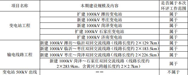 本工程建設(shè)內(nèi)容包括:新建 1000kV 棗莊、菏澤變電站,擴(kuò)建 1000kV 濰坊、石家莊、濟(jì)南變電站,新建濰坊~臨沂~棗莊~菏澤~石家莊雙回 1000kV 交流輸電線路(以下簡(jiǎn)稱“濰坊~臨沂~棗莊~菏澤~石家莊特高壓交流線路”)約 2×823.6km(含黃河大跨越 2×2.7km)。