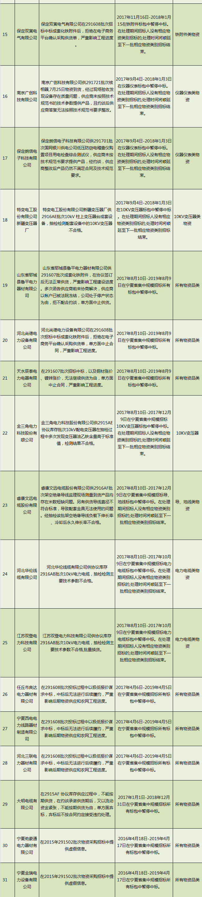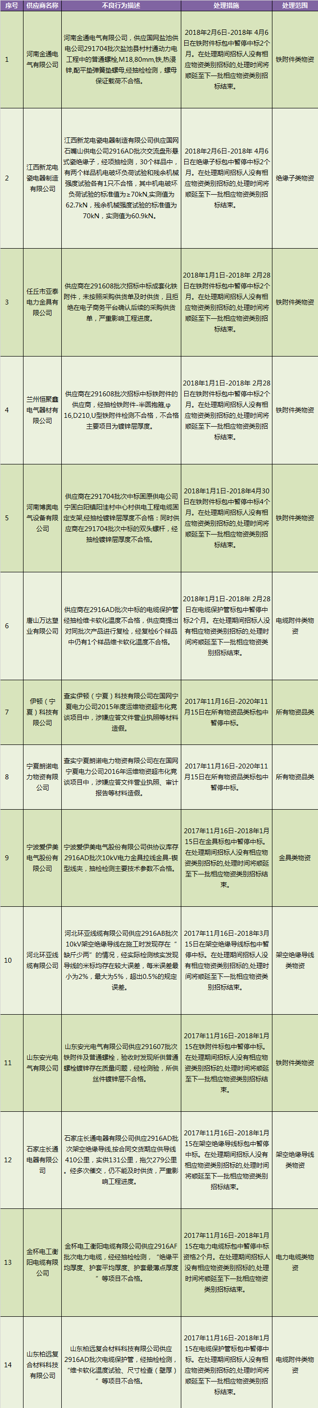 國(guó)網(wǎng)(寧夏)通報(bào)的供應(yīng)商不良行為處理情況(2018.2)