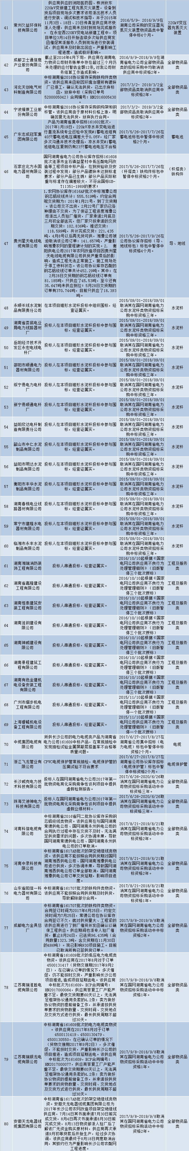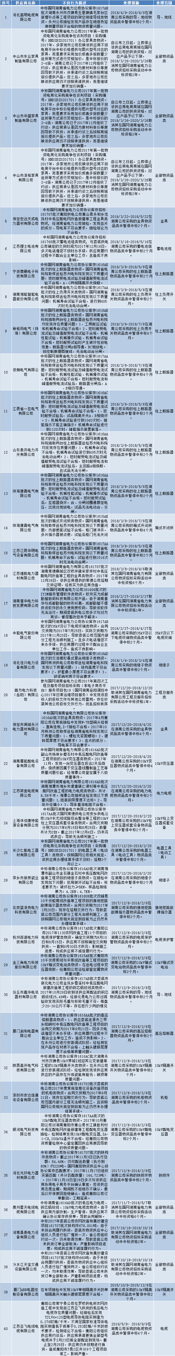 國網(wǎng)(湖南)通報(bào)的供應(yīng)商不良行為處理情況(2018.4)