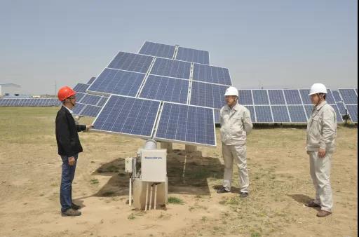 山西大同供電公司員工在光伏發(fā)電廠檢修光伏設(shè)備。