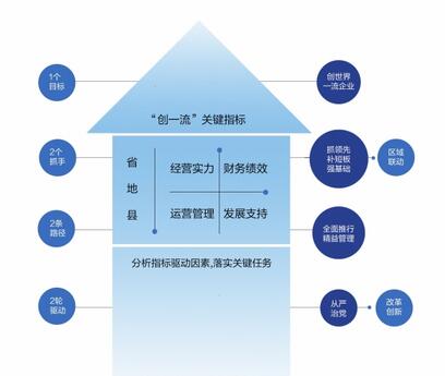 對照南方電網(wǎng)公司綜合標(biāo)桿一流評價標(biāo)準(zhǔn),該公司明確了目標(biāo)和差距,進(jìn)而推出一套科學(xué)的“創(chuàng)一流”“1212”工作體系:加速實現(xiàn)1個目標(biāo)——加快推動公司向綜合能源服務(wù)公司轉(zhuǎn)型,全力創(chuàng)建世界一流企業(yè),著力2個抓手——全面落實“抓領(lǐng)先、補短板、強基礎(chǔ)”和區(qū)域聯(lián)動總體計劃安排,堅持1條路徑——全面推行精益管理,實施2輪驅(qū)動——從嚴(yán)治黨和改革創(chuàng)新,分層分類落實關(guān)鍵指標(biāo)和關(guān)鍵任務(wù),確保該公司2019年實現(xiàn)“兩精兩優(yōu)”世界一流戰(zhàn)略目標(biāo)。